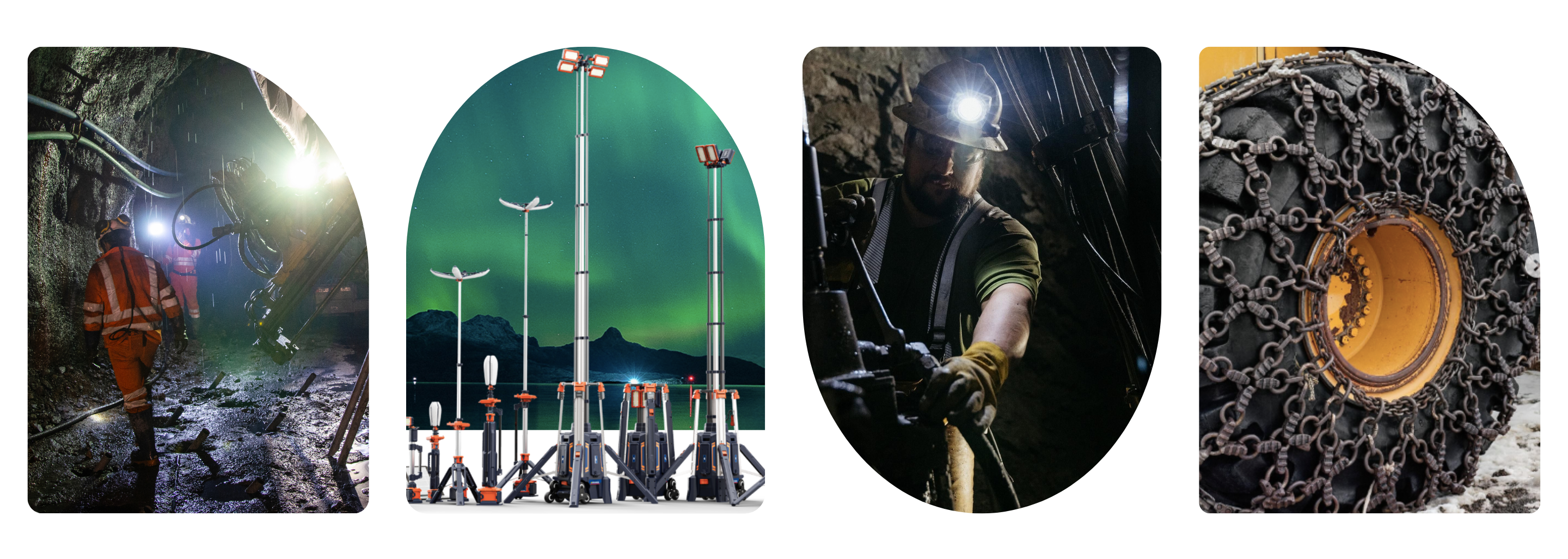 Torres de iluminación, lámparas LED industriales y cadenas para maquinaria pesada. Equipos de alto rendimiento, entrega rápida y soporte técnico especializado en faenas mineras.