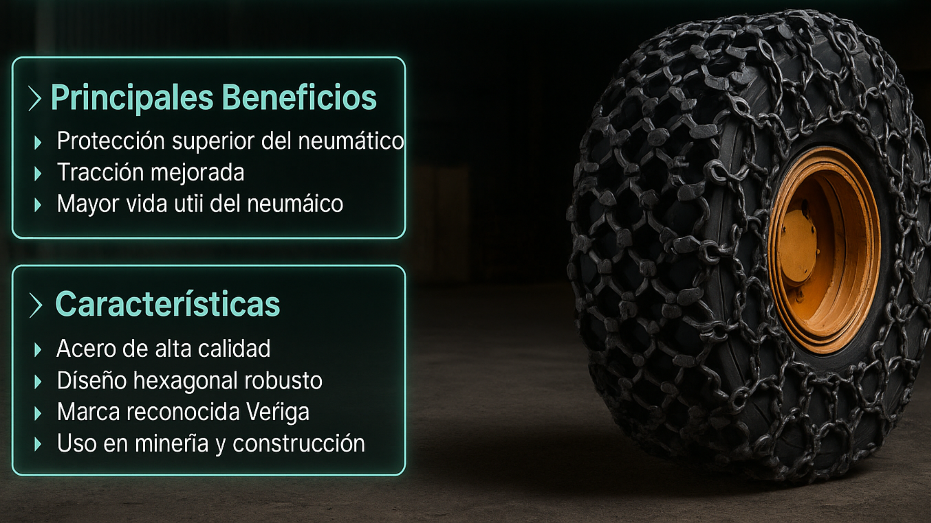 En Norlift Chile somos distribuidores de Veriga, fabricante europeo con más de 100 años de trayectoria en cadenas protectoras para neumáticos, cadenas antideslizantes y soluciones de tracción para maquinaria pesada.